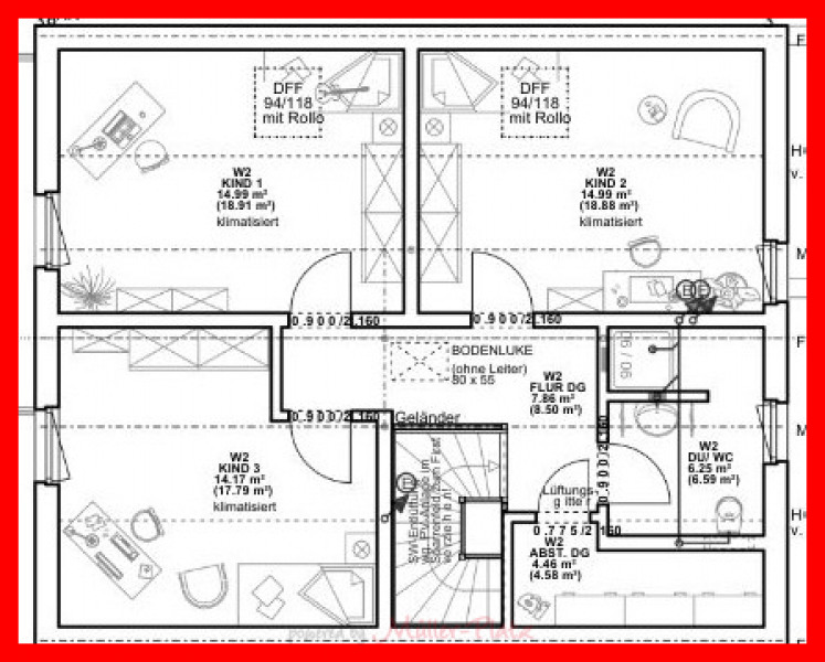 Über eine weitere Treppe im Flur gelangen Sie in das Dachgeschoss, das durch seine helle und großzügige Raumgestaltung besticht. Gleich rechts oben befindet sich ein kleiner Abstellraum, der zusätzlichen Stauraum bietet. Geradeaus liegt das zweite Badezimmer, das mit einem bodentiefen Fenster für viel Tageslicht sorgt. Auf der linken Seite des Flurs befinden sich drei geräumige Schlafzimmer, von denen zwei jeweils über ein zusätzliches Dachflächenfenster verfügen; alle Zimmer sind mit bodentiefen Fenstern ausgestattet und wirken besonders hell und freundlich. Die Kombination aus großen Fensterflächen lässt die Zimmer besonders hell und freundlich wirken. Die Zimmer bieten Ihnen ausreichend Platz für die flexible Nutzung als Schlaf-, Kinder- oder Arbeitszimmer.